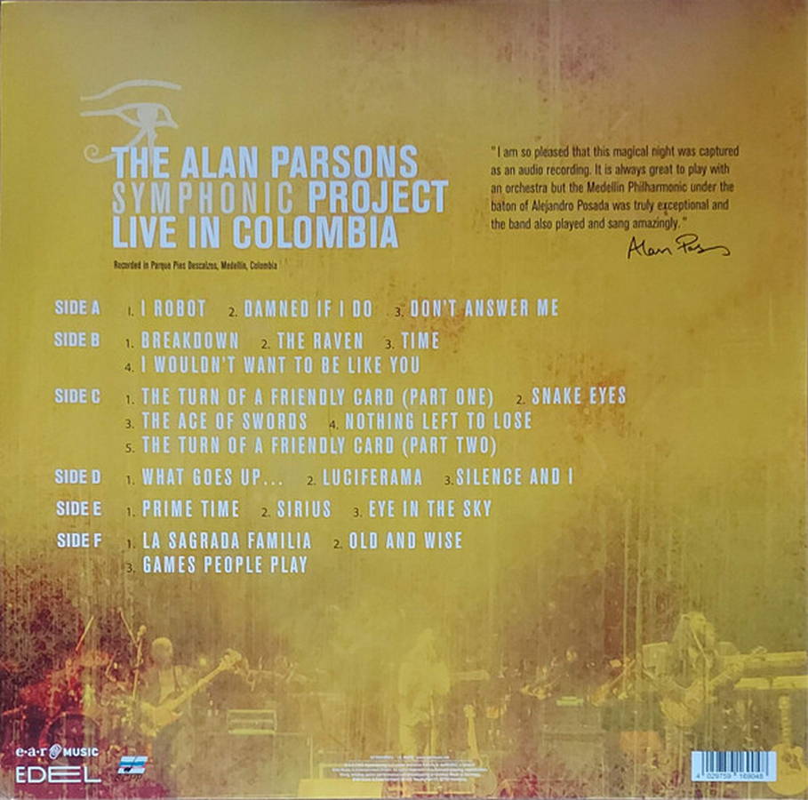 The Alan Parsons Symphonic Project – Live In Colombia (3LP color)