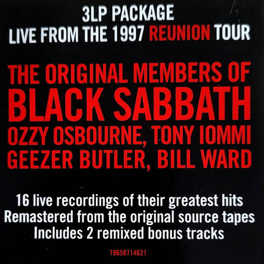 Альбом "Reunion" группы Black Sabbath представляет собой концертный релиз, выпущенный в 1998 году. Этот альбом знаменателен тем, что он запечатлел воссоединение оригинального состава группы: Оззи Осборн (вокал), Тони Айомми (гитара), Гизер Батлер (бас-гитара) и Билл Уорд (ударные). Запись была сделана во время двух концертов, состоявшихся 4 и 5 декабря 1997 года в Бирмингеме, родном городе группы.