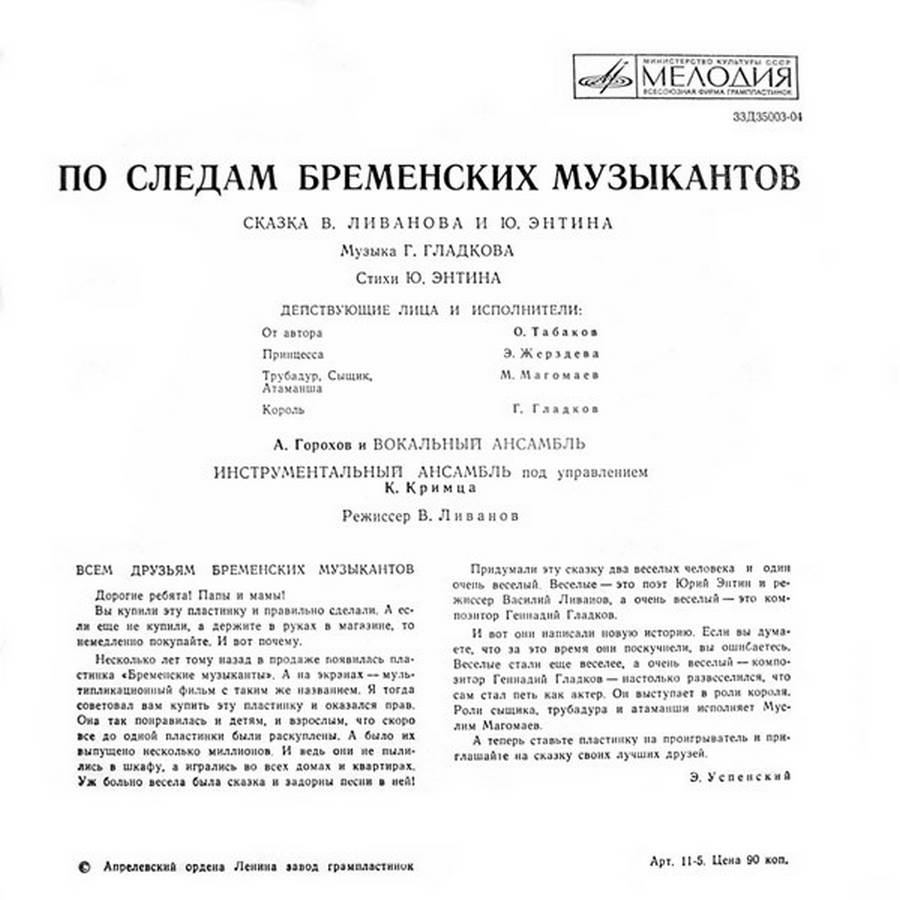 В. Ливанов, Ю. Энтин – По Следам Бременских Музыкантов